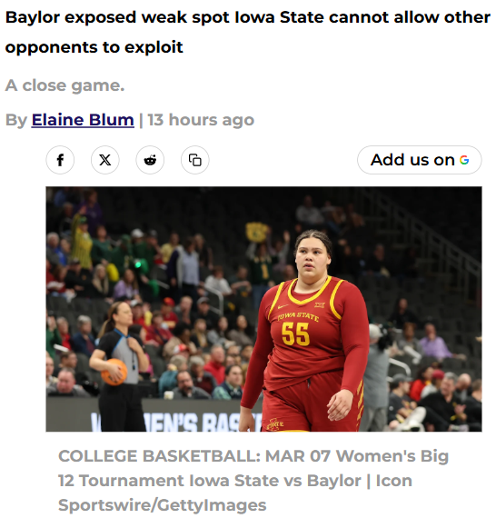 GalacticGiraffe+FollowIowa State’s next challenge: Who steps up?Baylor just showed every team how to slow down Iowa State—by making life tough for Audi Crooks and daring someone else to beat them. Crooks and Jada Williams carried almost the entire scoring load, but the rest of the Cyclones struggled to make an impact. It’s a wake-up call: if Iowa State wants to stay on top, they’ll need more players to step up when defenses lock in on their stars. Do you think the Cyclones can find that next gear before facing more ranked opponents? Who do you see as the next breakout contributor? #Sports #IowaState #Cyclones00Share
