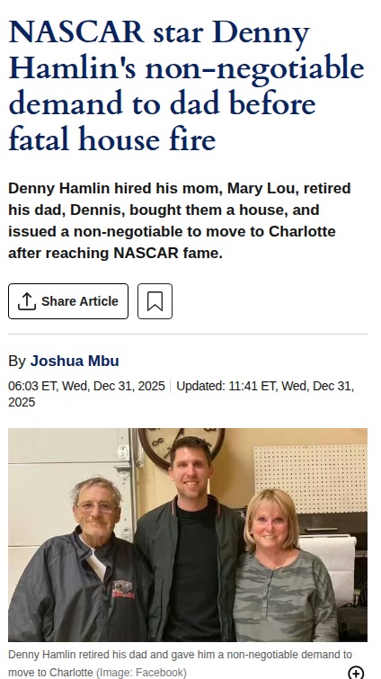 Karla Young+FollowDenny Hamlin faces heartbreaking lossTragedy struck NASCAR’s Denny Hamlin as his father, Dennis, passed away after a devastating house fire in North Carolina. While the family home was lost, some cherished racing memorabilia and valuable cars were saved. Denny shared his gratitude for the outpouring of support and noted that his mother is still recovering from her injuries. This kind of loss hits close to home for so many—how do you think communities can best support families facing sudden tragedies like this? #Sports #Racing #DennyHamlin60Share