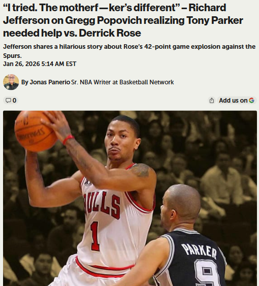 Theresa Boyd+FollowDerrick Rose vs Tony Parker: Pop Had to AdjustMan, that Rose vs Tony Parker duel was something else! Even Coach Pop had to admit D-Rose was on another level during his MVP run. Richard Jefferson shared how Pop told Tony, 'I appreciate what you’re doing, but we gotta send help.' Parker, always the competitor, took it in stride. Just shows how unstoppable Rose was at his peak—dropping 42 on the Spurs! Respect to both Hall of Fame guards for that battle. #Sports #Basketball #DerrickRose00Share
