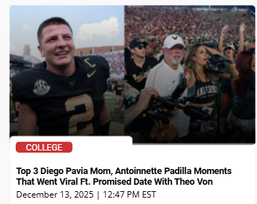 Heather Owens+FollowDiego Pavia’s mom steals the spotlightAntoinette Padilla, Diego Pavia’s mom, has become a viral sensation this season—sometimes outshining her son’s football heroics at Vanderbilt! From her headline-grabbing date with comedian Theo Von on Shannon Sharpe’s show, to being the go-to camera shot during Vandy’s blowout win over Kentucky, she’s become a fan favorite. Even ESPN analysts are talking about her, joking she’s getting the “Taylor Swift treatment” with all the attention. It’s wild how a parent’s energy and support can capture the nation’s attention. What do you think—should the cameras keep cutting to her, or is it too much? #Entertainment #DiegoPavia #Vanderbilt15Share