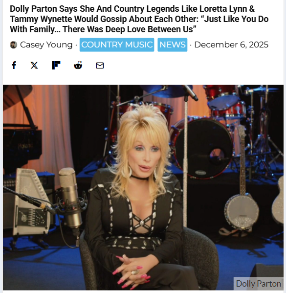 Christian Jones+FollowDolly Parton Spills Country Queen Tea 👑Dolly Parton just revealed that she, Loretta Lynn, and Tammy Wynette used to gossip about each other backstage—like sisters! She says it was all love, but the drama was real. Fans are now debating: was it just harmless fun, or is there more to the country legends’ “sisterhood” than we thought? Dolly’s honesty is giving us all the behind-the-scenes feels! #Entertainment #Celebrity #DollyParton102Share