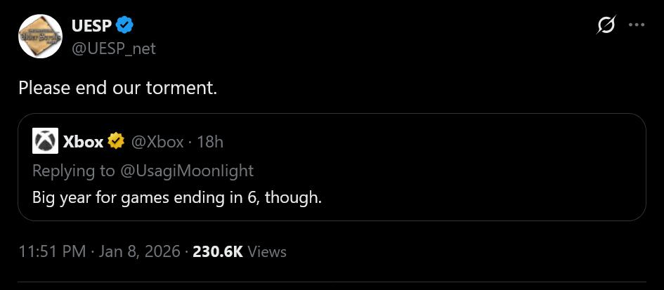 John Nelson+FollowIs Xbox Really Teasing Elder Scrolls 6?Xbox just dropped a cryptic hint about 2026, and Elder Scrolls fans are losing it. Was this a calculated move to stoke the hype engine, or just a clever bit of social media trolling? After eight years of radio silence, every word gets dissected. Do you think this is a genuine signal from Xbox, or are fans reading too much into it? Let’s debate: is this the start of a new era for Bethesda’s RPG, or just another wild goose chase? #Games #VideoGames #ElderScrolls600Share