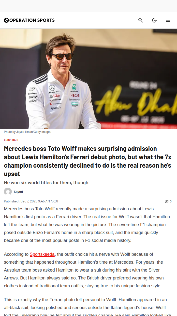 lisa79+FollowHamilton’s Suit Switch: Toto’s Real BeefDid anyone else catch Toto Wolff’s comments about King Lewis rocking a black suit for his Ferrari debut? Turns out, the real sting for Toto wasn’t Hamilton leaving Mercedes, but seeing him finally suit up—something he refused to do for years with the Silver Arrows. That viral photo outside Enzo Ferrari’s house? It’s more than just a fashion statement; it’s a reminder of the little battles behind the scenes. Thoughts on whether this is just classic Hamilton or a subtle shot at his old boss? #Sports #Racing #F110Share