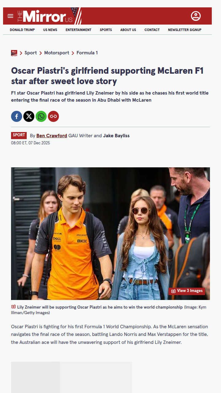 Victor Mathews+FollowPiastri vs Norris: McLaren’s Final ShowdownCan the McLaren duo’s friendly rivalry survive the season finale? Oscar “The Prodigy” Piastri is closing in on his first F1 World Championship, but Lando Norris holds a slim edge heading into the last race. Both have seven wins, but only one can take the crown. With Piastri’s girlfriend Lily cheering him on, will he pull off a dramatic upset or will Norris cement his status as McLaren’s top gun? Let’s hear your predictions! #Sports #Racing #F110Share