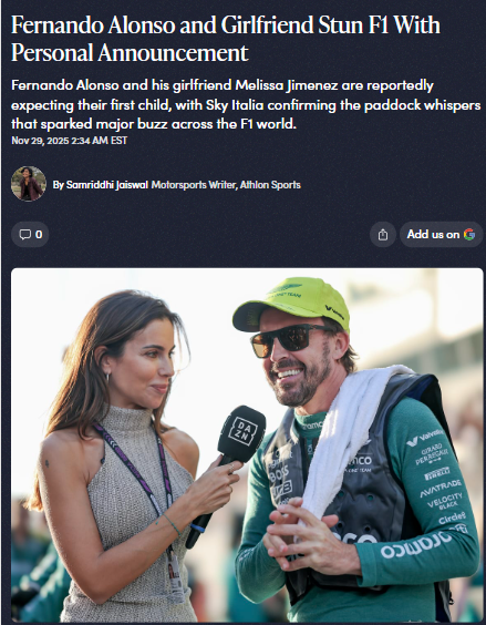 Jason Smith+FollowAlonso’s Big News: Baby on Board!Wow, huge news from the F1 paddock—El Nano is set to join the F1 dads club! Fernando Alonso and Melissa Jimenez are expecting, and it’s got the whole grid buzzing. With Alonso still showing his trademark grit at 43, this personal milestone feels like a new chapter for one of the sport’s true legends. Anyone else think this might give him an extra edge next season? #Sports #Racing #F120Share
