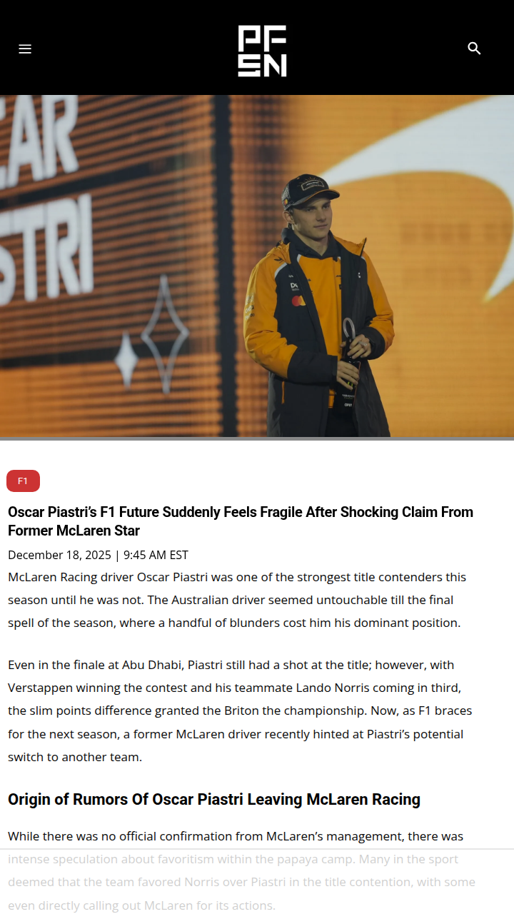 qglover+FollowIs Piastri Really Leaving the Papaya Squad?Wow, talk about drama in the McLaren garage! After a late-season slide and some eyebrow-raising strategy calls, rumors are swirling that Oscar Piastri might be eyeing a move away from the Papaya squad. Ex-McLaren ace Montoya claims Piastri and his manager, Webber, are already chatting with other teams. Is McLaren playing favorites with Lando, or is this just silly season noise? What do you all think—will Piastri stay or jump ship for 2025? #Sports #Racing #F100Share
