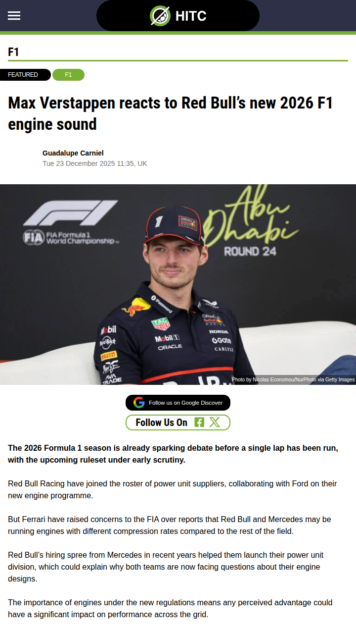 Isabel Collier+FollowRed Bull’s 2026 Engine: Mad Max’s First TakeThe F1 rumor mill is buzzing after Mad Max gave his first impressions of Red Bull’s 2026 engine, calling it “crisp” but admitting it’s still a work in progress. With Ferrari raising eyebrows over possible compression rate differences and Red Bull’s Mercedes-inspired power unit division under scrutiny, the engine rivalry is heating up before the new regs even hit the track. Could this be the start of a new era in the Red Bull-Mercedes tech battle? #Sports #Racing #F130Share