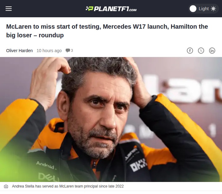 lisa79+FollowMcLaren Delays Test, W17 Drops, Hamilton HitBig news in F1 today: McLaren’s skipping the first days of Barcelona testing, which could shake up their 2026 prep. Meanwhile, Mercedes just launched the W17, hoping to bounce back after a tough ground-effect era. But the real drama? King Lewis Hamilton’s got a new race engineer at Ferrari, and insiders say this late switch could seriously hurt his 2026 title hopes. Thoughts on how this rivalry will play out? #Sports #Racing #F100Share