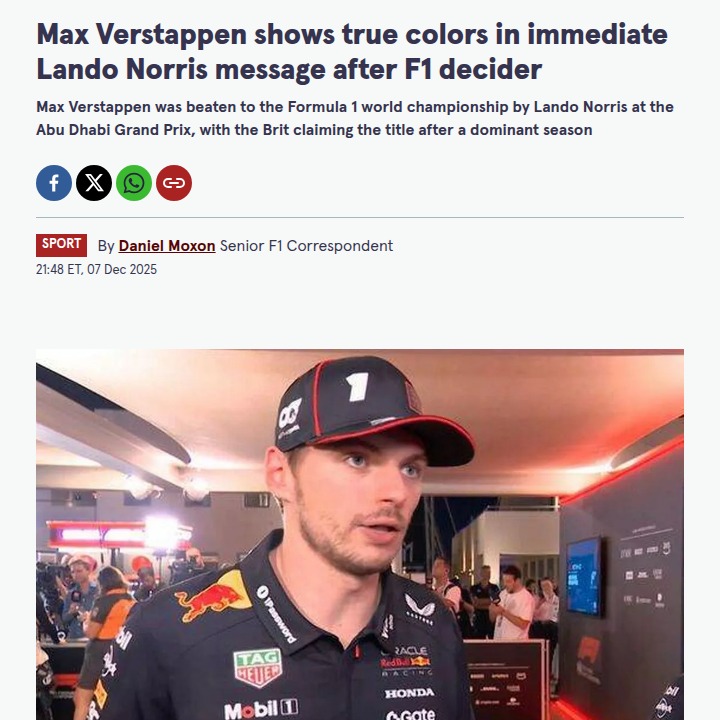 qglover+FollowNorris Dethrones Max: F1’s New Era BeginsWow, what a season finale! Lando “Last Lap Lando” Norris finally broke through and snatched the F1 crown from Super Max, ending Red Bull’s four-year reign. Despite Max Verstappen’s pole-to-flag win in Abu Dhabi, Norris’ third place was enough to clinch his first title. The respect between these two rivals was clear—Max told Lando to soak it all in. Is this the start of a new rivalry, or will Max bounce back stronger? #Sports #Racing #F100Share