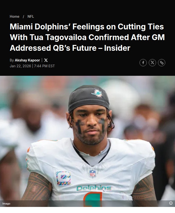 glen25+FollowMiami Dolphins shake up: Tua Tagovailoa era ending?Big moves are brewing in Miami as the Dolphins’ new leadership looks ready to part ways with Tua Tagovailoa, despite his massive contract extension. With Jeff Hafley and Jon-Eric Sullivan now calling the shots, there’s real buzz that Tua has played his last snap for the Fins. The catch? Cutting ties could leave the team with a jaw-dropping $99 million dead cap hit, depending on when they make the move. It’s a bold strategy that could reshape the Dolphins’ future—and spark plenty of debate among fans. What do you think: Is it time for Miami to move on from Tua? #Sports #Football #MiamiDolphins10Share
