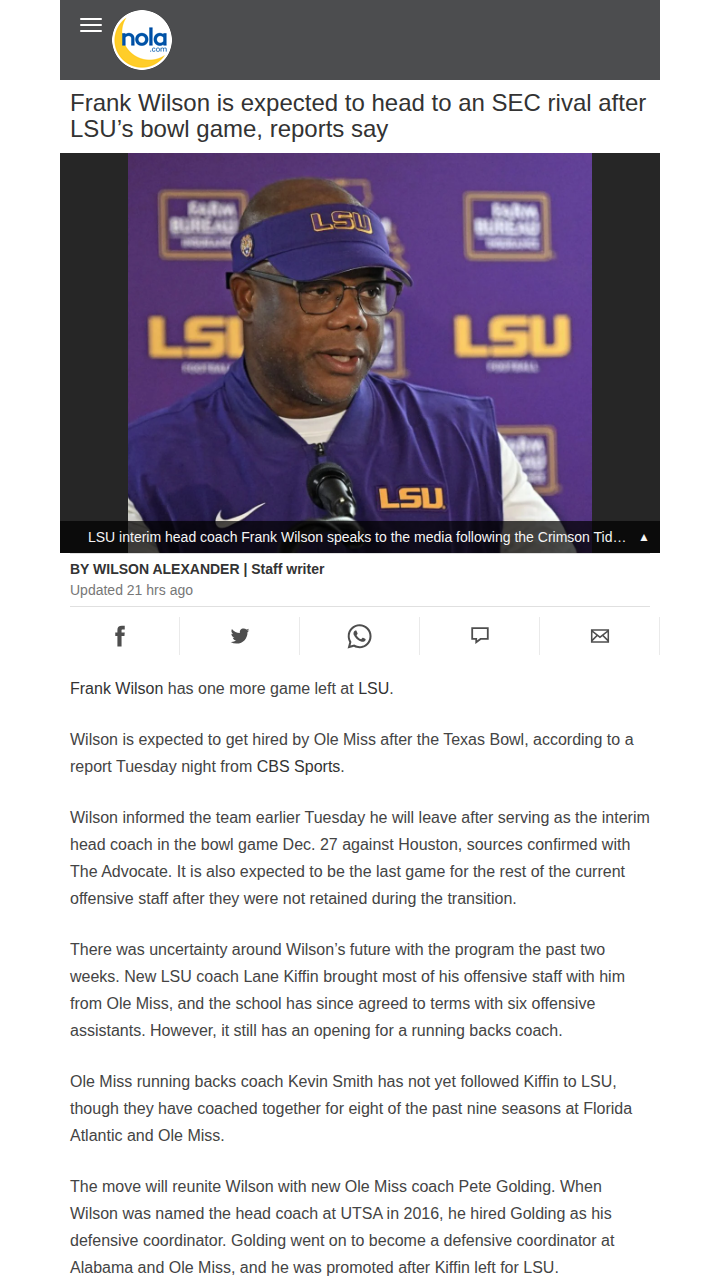 Michael Pitts+FollowFrank Wilson’s SEC Switch: LSU to Ole Miss?Big news on the Bayou: Coach Frank Wilson, a recruiting ace and key figure for the Tigers, is set to jump ship to Ole Miss after the Texas Bowl. With the coaching carousel spinning, Wilson’s move adds more fuel to the LSU-Ole Miss rivalry. He’ll reunite with Pete Golding in Oxford, making next season’s SEC opener even spicier. Thoughts on this staff shakeup and what it means for both squads? #Sports #Football #LSU00Share