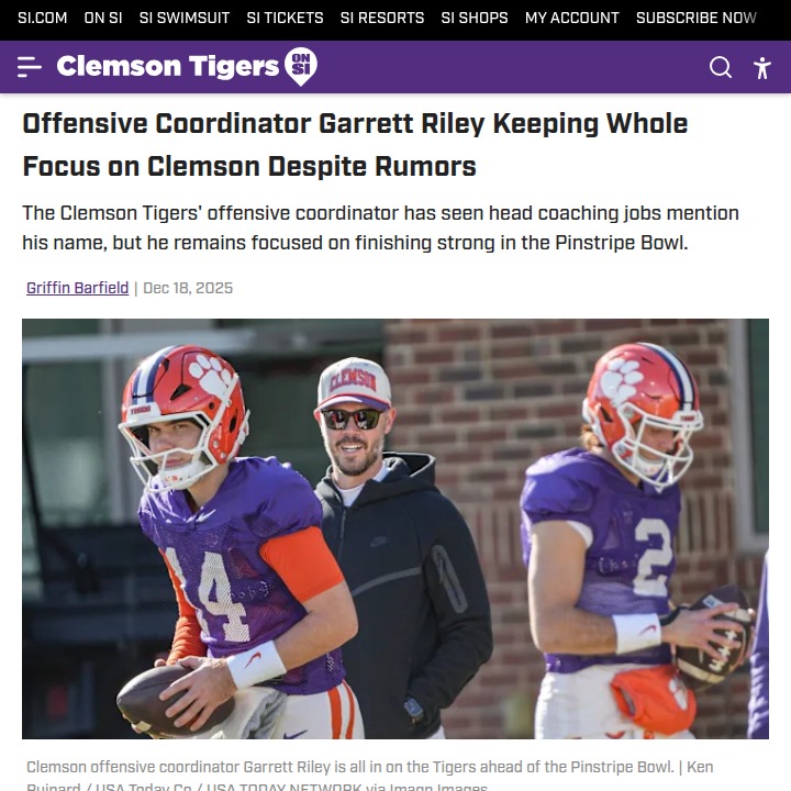 phughes+FollowGarrett Riley’s commitment fires up ClemsonGarrett Riley isn’t letting head coaching rumors distract him—he’s all in on Clemson as they gear up for the Pinstripe Bowl against Penn State. Even with players opting out and injuries piling up, Riley’s focus is on ending the season with a statement win and sending off seniors on a high note. He credits the coaching staff and Dabo Swinney for making Clemson a special place, even if this season didn’t go as planned. With assistants leaving and depth chart changes, Riley’s steady leadership could be the difference. How do you feel about Riley’s loyalty and the Tigers’ chances in New York? #Sports #Football #ClemsonTigers00Share