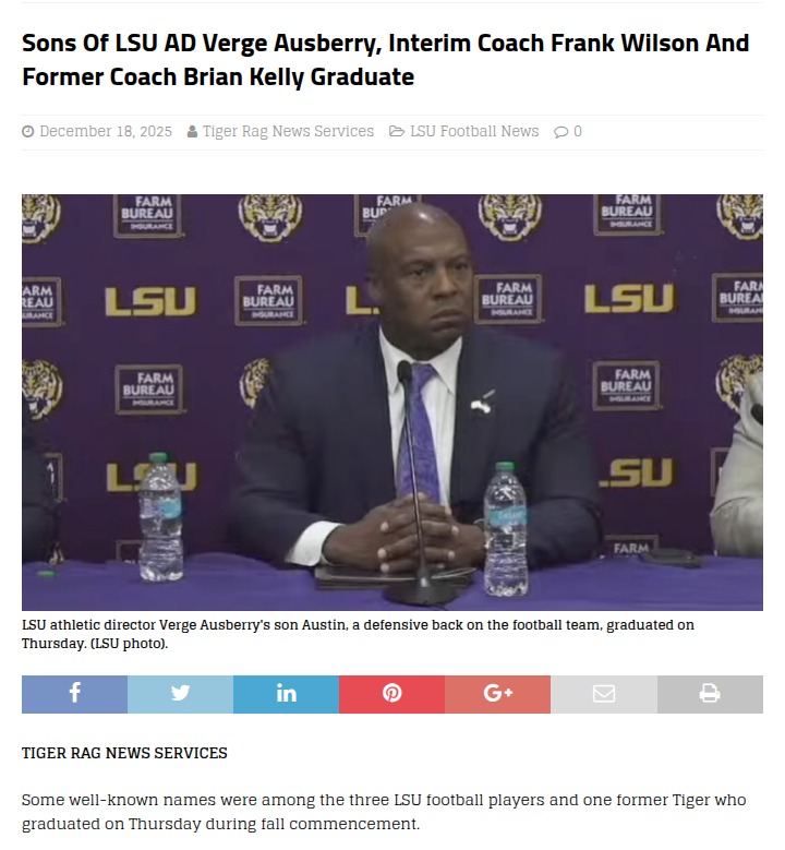 phughes+FollowLSU football family celebrates big graduation winsLSU just had a proud moment off the field—three football players with deep Tiger roots, plus a former player, walked across the stage at fall commencement. Austin Ausberry (son of AD Verge Ausberry), Frank “Quad” Wilson IV (son of interim coach Frank Wilson), and Kenzel Kelly (son of ex-head coach Brian Kelly) all earned their degrees, alongside defensive end Patrick Payton. It’s awesome to see these athletes balancing the grind of SEC football with academics. How do you think having family ties to the program shapes their experience? Let’s give them a shoutout and talk about the impact of legacy at LSU! #Sports #Football #LSUGrad00Share