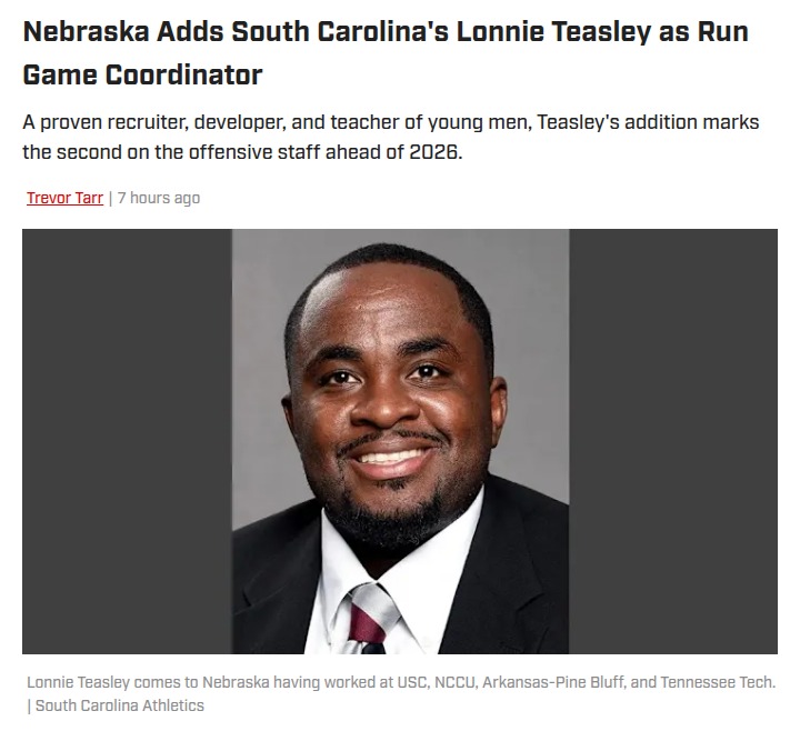John Camacho+FollowNebraska football shakes up run gameNebraska just made a bold move by bringing in Lonnie Teasley from South Carolina as the new run game coordinator. After a season where the Huskers struggled to control the line of scrimmage, especially in that tough loss to Iowa, this hire signals a real commitment to revamping the offense. Teasley’s reputation for building strong offensive lines could be exactly what Nebraska needs to get back on track. What do you think—will this fresh approach finally help the Huskers dominate up front next season? #Sports #Football #NebraskaFootball00Share