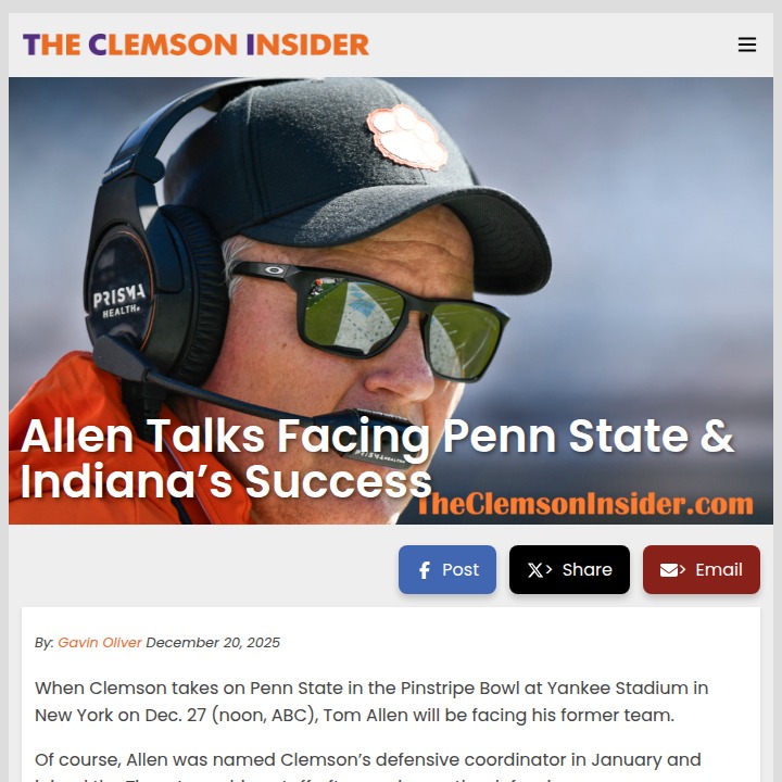 Michael Pitts+FollowAllen Faces Old Squad in Pinstripe BowlHow’s this for drama? Tom Allen, now the Tigers’ D-coordinator, is set to face his old Penn State crew in the Pinstripe Bowl at Yankee Stadium. Allen helped the Nittany Lions make history last year, so this matchup has extra spice. Plus, Hoosier fans—how about Indiana’s crazy run under Cignetti? Allen’s genuinely happy for his former players, but you know he’s got something to prove against Penn State. Thoughts on how Allen’s insight could tip the scales? #Sports #Football #PinstripeBowl00Share