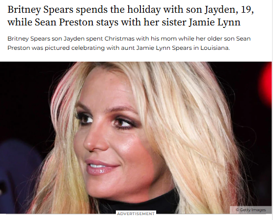 Joel Johnson+FollowBritney’s Christmas Family ShuffleBritney Spears had a very split Christmas this year—she spent the holiday with her younger son Jayden, while her eldest, Sean Preston, was celebrating with aunt Jamie Lynn in Louisiana. Jamie Lynn even posted some cozy family pics! Britney’s been open about how tough it’s been being a mom in the spotlight, but she’s hoping for more family reconnections as her boys grow up. Plus, she’s hinting at new creative projects for 2025! #Relationships #BritneySpears #FamilyMatters30Share