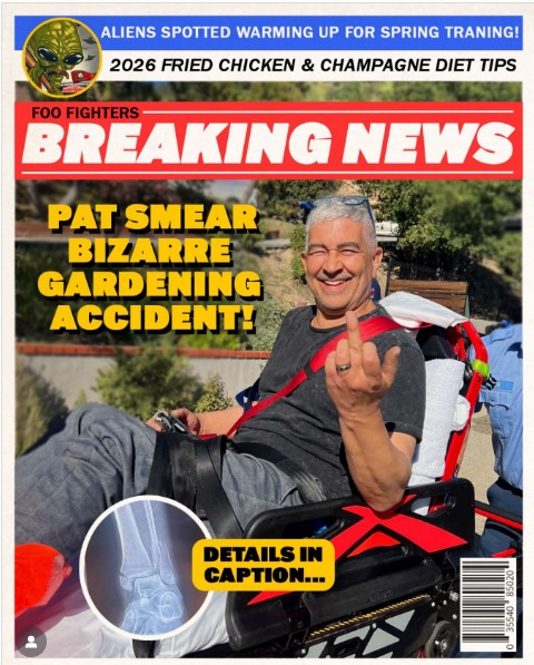 Jay Carter+FollowPat Smear’s Wild Gardening Mishap 🌱Foo Fighters fans are freaking out after Pat Smear broke his foot in a “bizarre gardening accident” just before the Take Cover tour! The band posted a hilarious pic of Pat flipping the bird from a wheelchair, but the real drama is: Jason Falkner is stepping in. Some fans are hyped, others aren’t convinced he can fill Pat’s shoes. Is this a Spinal Tap-level curse or just rockstar bad luck? #Entertainment #Music #FooFighters00Share