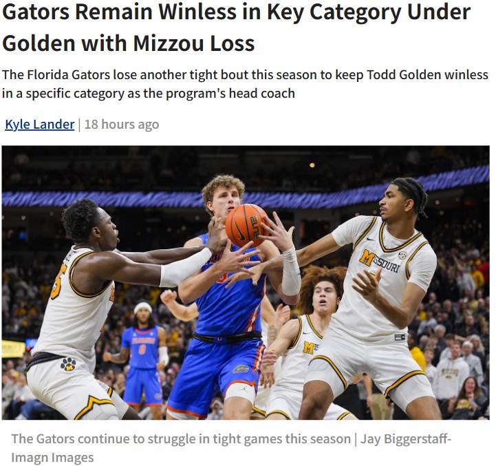 EchoingEagle+FollowFlorida Gators’ SEC opener heartbreak in MissouriAnother nail-biter for the Gators ends in disappointment as Florida drops its SEC opener to Missouri, 76-74. Despite Thomas Haugh’s standout 24-point night and some highlight-reel dunks, Florida just couldn’t hold onto a late lead. That makes four straight SEC opener losses under Coach Golden—a stat that’s starting to sting for fans. With a 9-5 record, the pressure is on as the Gators get ready to host Georgia next. What do you think needs to change for Florida to finally break this SEC opener curse? #Sports #Gators #FloridaBasketball00Share