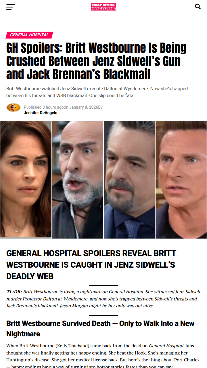 Ryan Massey+FollowBritt’s nightmare in Port Charles just got worseBritt Westbourne is stuck in a life-or-death squeeze in Port Charles. After witnessing Jenz Sidwell execute Professor Dalton, she’s now forced to run Sidwell’s shady lab—knowing one wrong move could get her killed. As if that’s not enough, WSB chief Jack Brennan is blackmailing her for inside info, threatening her hard-won medical license. With law enforcement compromised and nowhere to turn, Britt’s only hope might be Jason Morgan, who knows a thing or two about impossible odds. Do you think Jason can pull off a rescue, or is Britt out of luck this time? Let’s hear your theories! #Entertainment #TVSeries #GeneralHospital60Share