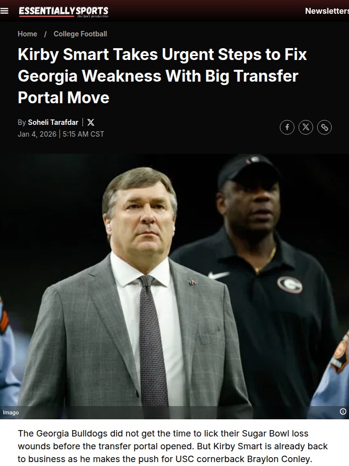 Michael Pitts+FollowKirby Smart shakes up Georgia’s defenseKirby Smart isn’t wasting a second after Georgia’s Sugar Bowl loss—he’s already making bold moves in the transfer portal. The Bulldogs are eyeing USC’s Braylon Conley to patch up their cornerback woes, a spot that’s been haunting them since that tough finish against Ole Miss. With Smart and new staff additions working overtime, fans are buzzing: will these fresh faces finally bring the lockdown defense back to Athens? And with local talent like Khalil Barnes also in the mix, it’s clear Georgia’s not just reloading—they’re rethinking their whole defensive strategy. What do you think: will these moves pay off next season? #Sports #Football #GeorgiaBulldogs00Share