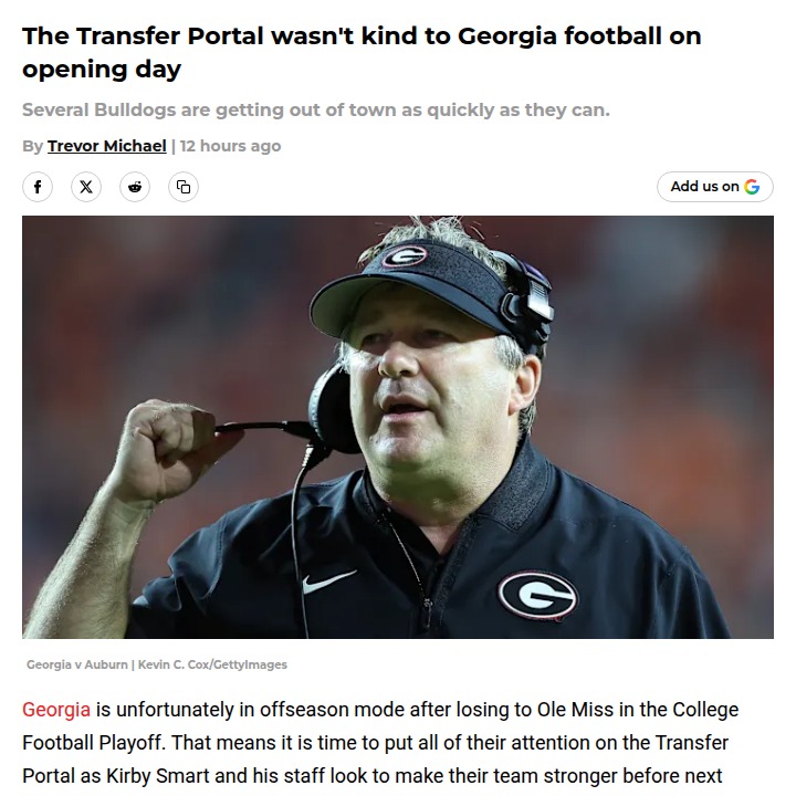 Aaron Taylor+FollowGeorgia football faces Transfer Portal shakeupSeven Georgia Bulldogs have already hit the Transfer Portal as the offseason kicks off, but the real surprise is that none were major contributors last season. While it’s tough to see any Dawgs leave, the core of the team remains intact for now. Fans remember last year’s shock when Carson Beck left, so everyone’s watching closely to see if bigger names follow. Meanwhile, Kirby Smart and his staff are working hard to bring in top talent, with eyes on big names like USC’s Devan Thompkins. How do you feel about the portal’s impact on Georgia’s future? #Sports #Football #GeorgiaFootball00Share