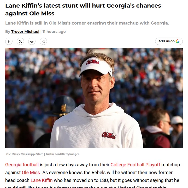 glen25+FollowKiffin’s Advice: Can Dawgs Be Stopped?Lane Kiffin may have left the Rebels for LSU, but he’s still stirring the pot before Georgia’s big playoff clash with Ole Miss. Kiffin pointed out that the Dawgs didn’t punt once in their last meeting, putting the spotlight on Georgia’s high-powered offense and Gunner Stockton. Will Ole Miss use their old coach’s tips to finally slow down the Dawgs, or will Georgia keep rolling? This rivalry just got even spicier! #Sports #Football #GeorgiaFootball00Share