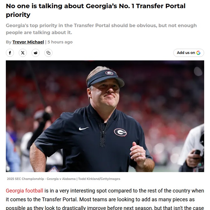 phughes+FollowGeorgia’s real Transfer Portal battleGeorgia football isn’t scrambling to rebuild like most teams this Transfer Portal season—their biggest challenge is actually keeping their own talented, young roster together. With 11 players already out and only five new faces in, the Bulldogs’ main focus is holding onto the core that just won the SEC as one of the youngest squads in the country. Rumors about key players like Nate Frazier possibly leaving have fans on edge. If Kirby Smart can keep this group intact, Georgia could be set for another SEC title run. What do you think—is retention more important than new recruits this year? #Sports #Football #GeorgiaFootball00Share