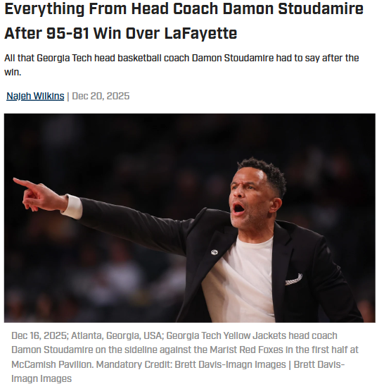 EchoingEagle+FollowGeorgia Tech’s offense explodes in big winGeorgia Tech fans, this was the kind of game you love to see—95 points on the board, three players with 20+ points, and a team that’s clearly finding its rhythm. Coach Stoudamire called it a true team effort, especially praising the way the guys stepped up in the second half on defense and how young players like Akai Fleming are already making a huge impact. Even with some key injuries, the team’s depth and grit are shining through. How do you feel about Tech’s momentum heading into conference play? Who’s impressing you most so far? #Sports #GeorgiaTech #CollegeBasketball00Share