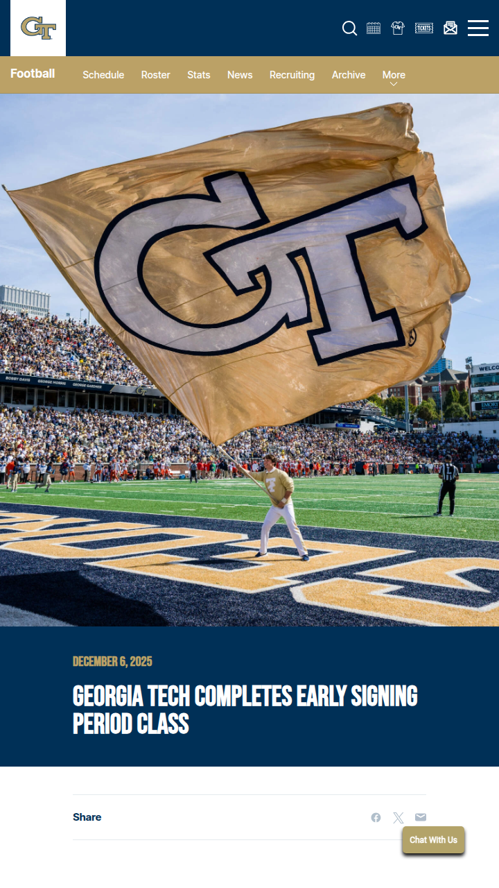 Christopher Hughes+FollowGeorgia Tech’s football future just got biggerGeorgia Tech is stacking up for a powerhouse 2026 season, signing 24 high school seniors—most of them local talent from Georgia, Florida, and Alabama. The new class is loaded with size and skill, especially up front, with seven linemen averaging 6'4" and 300 pounds. The latest addition is four-star QB Cole Bergeron, bringing even more excitement. Plus, major upgrades are coming to Bobby Dodd Stadium and other athletic facilities thanks to a $500 million initiative. If you’re a Yellow Jackets fan, how do you feel about this new wave of recruits and the investment in Tech’s sports future? #Sports #Football #GeorgiaTech00Share