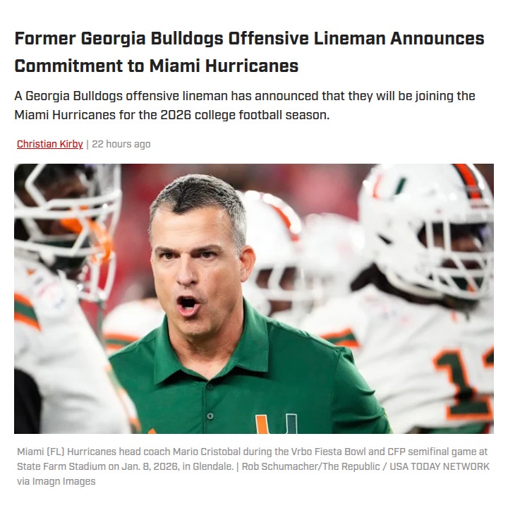Amy Williams+FollowBulldogs’ Jamal Meriweather Heads to The UBig news from the Dawgs’ camp: Jamal Meriweather, a former reserve on Georgia’s O-line, is taking his talents to the Miami Hurricanes for 2026. While he didn’t get much shine in Athens, the ‘Canes clearly see major upside. This move wraps up one of the last big portal departures for UGA—how do you think this impacts the Dawgs-Hurricanes rivalry down the road? #Sports #Football #GoDawgs00Share
