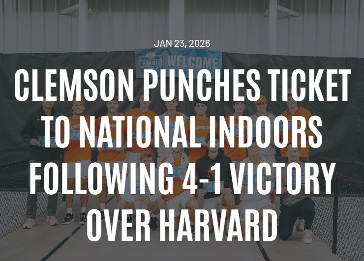 Dawn Fritz+FollowClemson clinches spot at National Indoors!Clemson men’s tennis just made program history by securing their first-ever trip to the ITA National Indoor Championships under Coach Brandon Wagner. The Tigers pulled off a gritty 4-1 win over Harvard, highlighted by a dramatic doubles comeback and dominant singles play. This victory isn’t just another notch in the win column—it’s a huge step forward for Clemson tennis and a proud moment for fans. What do you think this breakthrough means for the team’s future? Let’s hear your thoughts on how far the Tigers can go! #Sports #ClemsonTennis #GoTigers00Share