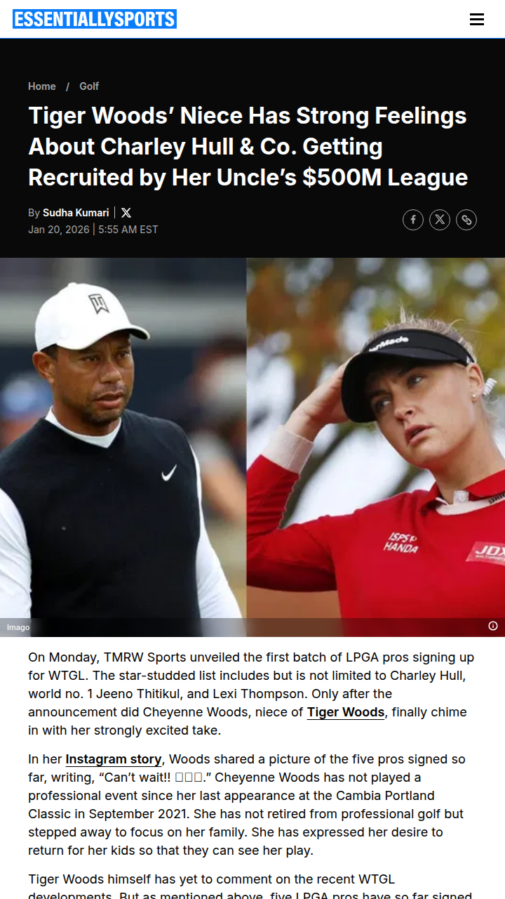 swall+FollowLexi Joins Tiger’s $500M WTGL: Right Move?Big news in the golf world—Lexi “The Powerhouse” Thompson is among the first LPGA stars to sign up for Tiger’s new WTGL league, alongside Charley Hull and Jeeno Thitikul. But not everyone’s sold on Lexi’s spot, given her lighter schedule lately. Cheyenne Woods, Tiger’s niece, is hyped, but some fans wonder if the league should spotlight younger talent. Is Lexi the right anchor for this new era? #Sports #Golf #WTGL20Share