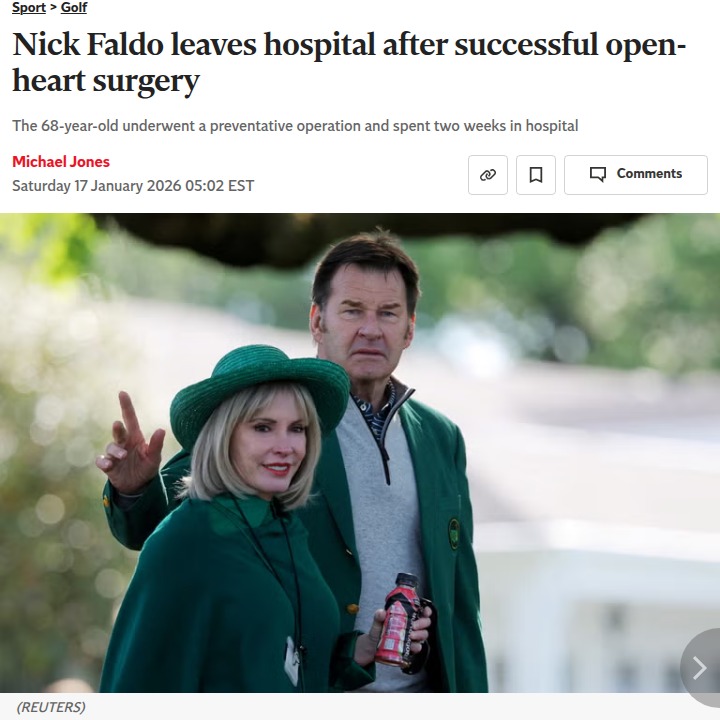 Gabriella Gonzalez+FollowSir Nick Faldo’s Comeback After SurgeryGreat news for golf fans: Sir Nick “Faldo” is back home after a successful open-heart surgery! The six-time major champ, who famously chased down the Shark at Augusta in ‘96, is already looking ahead to Masters Week. Faldo’s resilience is as legendary as his comeback against Greg Norman. Can’t wait to see him back in action, both on the course and in the commentary booth. Thoughts on his legacy and that unforgettable Masters rivalry? #Sports #Golf #NickFaldo00Share