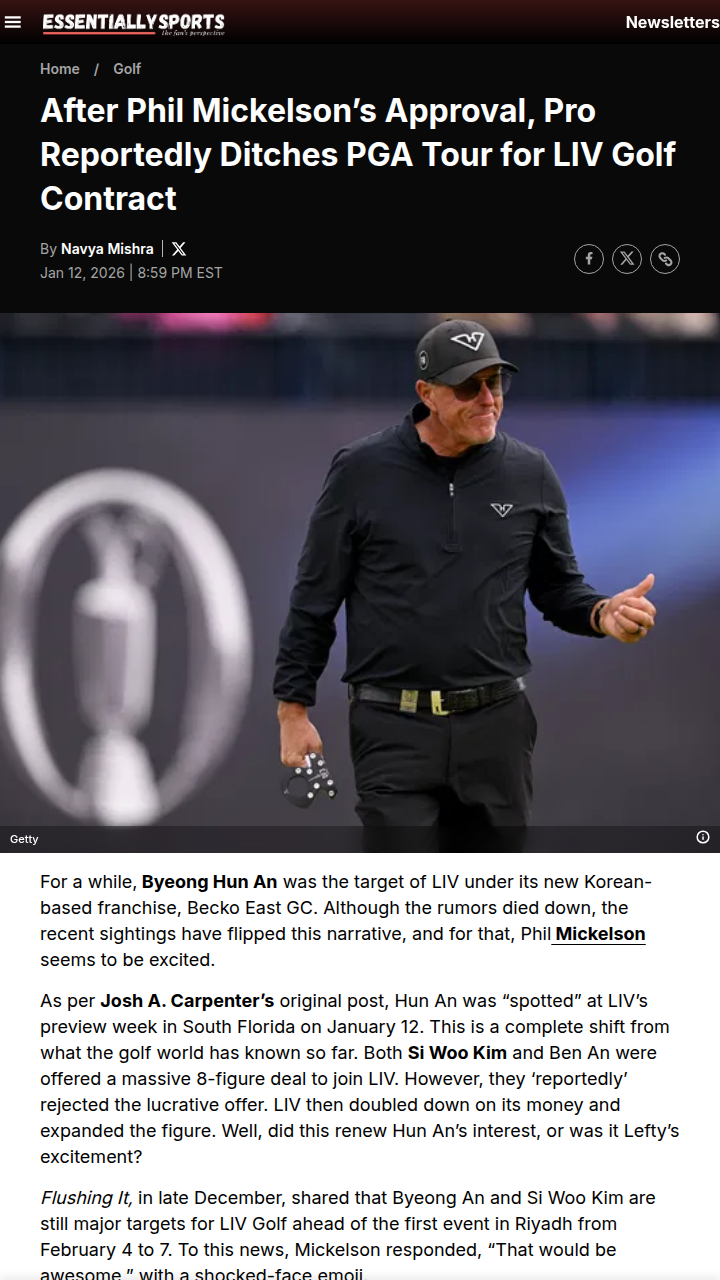 rmendoza+FollowLefty’s Nod: Ben An Eyes LIV After PGA Exit?Big news in the golf world—Ben An, the Korean ace who made history as the youngest US Amateur champ, has reportedly been spotted at LIV Golf’s preview week. With King Phil (Mickelson) hyping the move, it looks like An could be the next big name to swap the PGA Tour for LIV’s new Korean franchise. After Si Woo Kim turned down a massive offer, all eyes are on An to see if he’ll shake up the rivalry between the tours. Thoughts on this potential power shift? #Sports #Golf #LIVGolf00Share