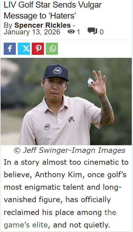 Michael Singh+FollowAK’s Comeback: From Zero Points to Zero FilterAnthony Kim, aka AK, just turned the LIV Golf scene upside down. After a 12-year hiatus and a rocky return with zero points, Kim clawed his way back into the league through sheer grit at the Promotions event. But it’s his fiery message to the doubters—telling ‘em to “suck it”—that’s got everyone talking. Love him or hate him, AK’s comeback is pure drama, and the rivalry with his critics is officially on. #Sports #Golf #AnthonyKim00Share