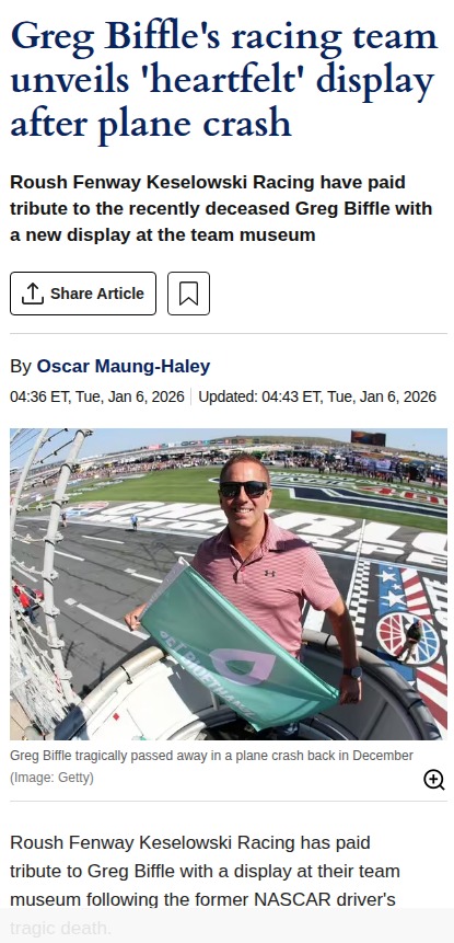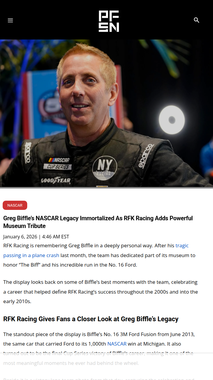 qglover+FollowRemembering The Biff: RFK's Touching TributeRFK Racing just unveiled a moving tribute to The Biff at their museum, spotlighting his legendary No. 16 Ford—the same ride that clinched Ford’s 1,000th NASCAR win. Fans are sharing heartfelt memories, and it’s clear Biffle’s legacy runs deep in the NASCAR family. If you’re near the museum, it’s worth a visit to honor a true racer who always made time for his fans. Lap 16 at Daytona will hit different this year. Thoughts? #Sports #Racing #GregBiffle20Share