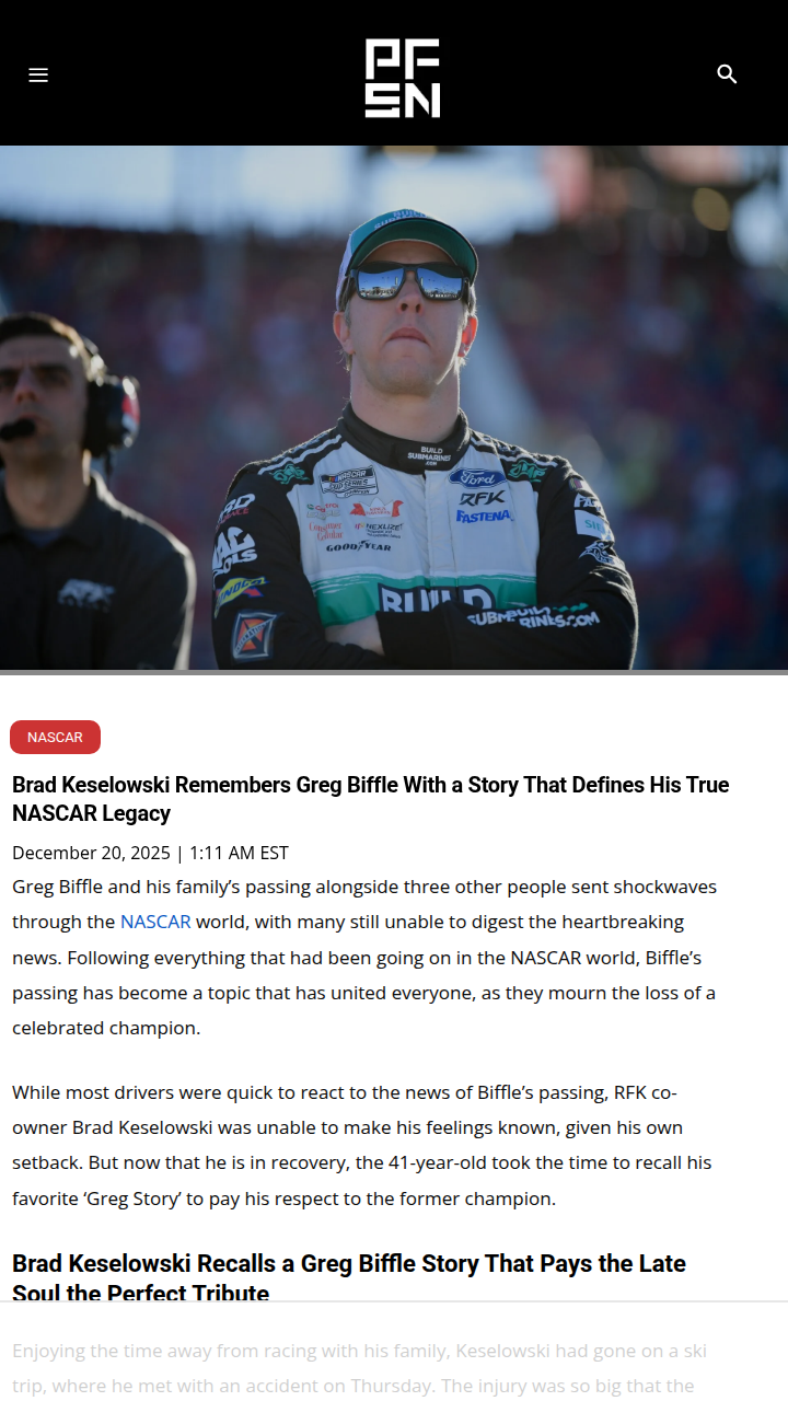 Jeremy Campbell+FollowKeselowski’s Greg Biffle Story Hits HomeStill reeling from the shocking loss of “The Biff,” Brad Keselowski took to X to share a story that truly captures Greg Biffle’s legacy. Even while recovering from his own injury, Brad remembered how Biffle once lifted a friend’s spirits with a spontaneous UTV sand dunes trip. It’s a reminder of how much Biffle meant to the NASCAR family—not just as a fierce competitor, but as a genuine friend. The garage just won’t be the same without him. #Sports #Racing #GregBiffle240Share