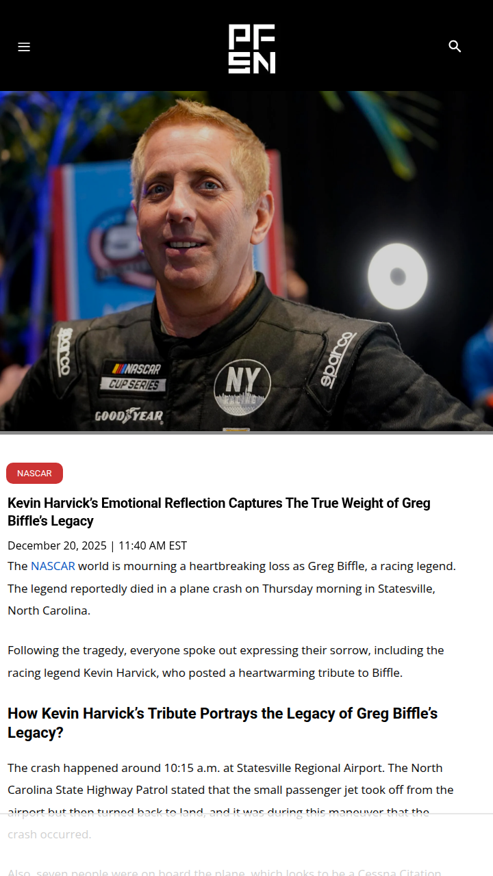 Victor Mathews+FollowRemembering Greg Biffle: NASCAR’s IronmanTough week for NASCAR Nation as we lost the legendary Greg Biffle in a tragic plane crash. FOX Sports honored The Biff with a moving tribute during the Panthers-Bucs game, spotlighting his 19 Cup wins and heroic Hurricane Helene relief flights. The outpouring at his Walk of Fame plaque in Mooresville shows just how much he meant to racing and the Carolinas. What’s your favorite Biffle moment? #Sports #Racing #GregBiffle20Share