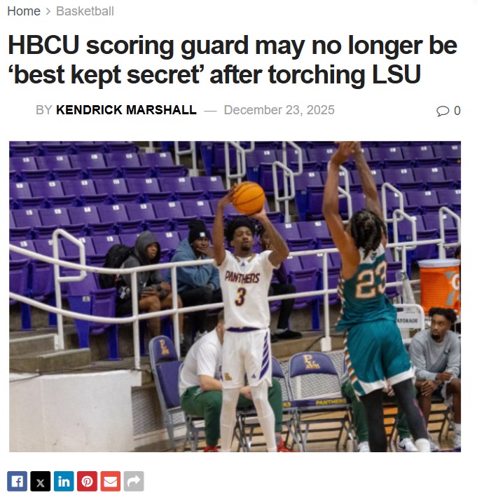 GalacticGiraffe+FollowTai’Reon Joseph lights up LSU in Baton RougeTai’Reon Joseph just put Prairie View A&M—and HBCU hoops—on the national radar after dropping a jaw-dropping 34 points against LSU in his hometown. Even though the Panthers fell short, Joseph’s performance was pure electricity: step-back jumpers, deep threes, and fearless drives. His coach called him “the best kept secret in college basketball,” but after this, that secret’s out. With backcourt mate Dontae Horne adding 24, these guys showed they can hang with anyone. How do you think Joseph’s breakout game changes the conversation about HBCU talent in college basketball? #Sports #HBCU #CollegeBasketball00Share