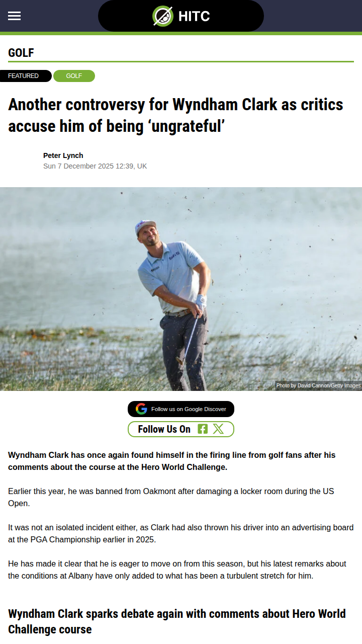 Krystal Lopez+FollowWyndham Clark Stirs Up Hero World ChallengeWyndham Clark just can’t stay out of the headlines! After his blunt comments about the Albany course at the Hero World Challenge, fans are calling him out for being 'ungrateful'—especially given his past run-ins like the Oakmont locker room incident and PGA driver toss. Despite the noise, Clark is tied for fifth heading into the final round. Can he silence the critics with a strong finish at Tiger’s event? #Sports #Golf #HeroWorldChallenge00Share