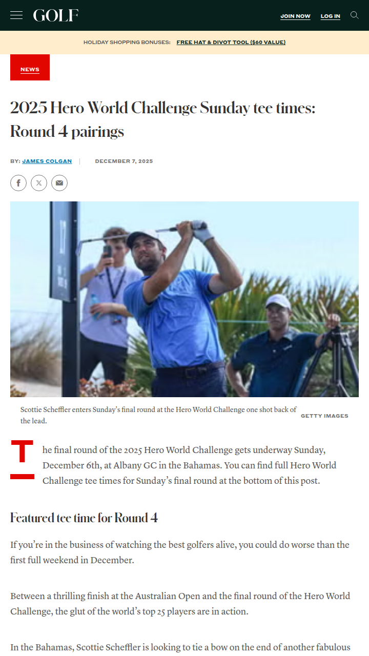 swall+FollowScheffler Eyes Hero World Challenge Hat TrickGolf fans, the Hero World Challenge is heating up in the Bahamas! With King Tiger hosting but sidelined, all eyes are on Scottie Scheffler as he chases a three-peat and that $1 million top prize. The field is stacked—Ryder Cup rivals, past champs like Spieth and Matsuyama, and a whopping $5 million purse. Can Scheffler defend his crown after a tough season? Let’s hear your picks and predictions! #Sports #Golf #HeroWorldChallenge00Share