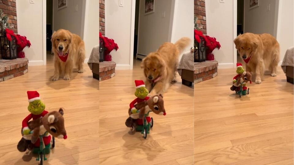 Cassandra Snyder+FollowBoston pup vs. the Grinch: Holiday drama!Copley, Boston’s favorite Golden Retriever, just had his Christmas spirit put to the test when a remote-controlled Grinch made off with his beloved Rudolph toy—right in his own living room! The internet can’t get enough of Copley’s hilarious mix of disbelief and determination as he stomps, barks, and tries to outwit the sneaky green thief. Over 126,000 people have already joined in the fun, sharing laughs and sympathy for Copley’s plushie plight. Have you ever seen your pet react this strongly to a toy thief? Let’s hear your funniest pet drama stories! #Pets #BostonDogs #HolidayDrama10Share