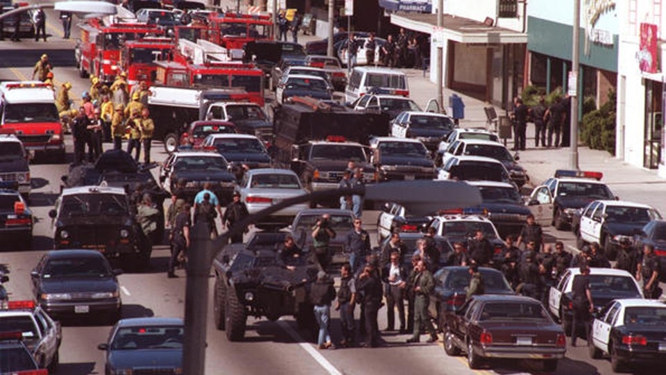 The Event That Changed Policing: America’s Biggest Bank Shootout On February 28, 1997, Los Angeles saw one of the most intense urban gunfights in U.S. history, later called the North Hollywood Shootout. Two robbers, Larry Phillips Jr. and Emil Mătăsăreanu, entered a Bank of America branch wearing homemade body armor. They carried multiple firearms, including fully automatic rifles, high-capacity magazines, and handguns. Their armor allowed them to withstand standard police sidearms and shotguns, making the initial confrontation extremely dangerous. Phillips and Mătăsăreanu had rehearsed their approach, anticipating how officers would respond, which extended the gun battle to 44 minutes across North Hollywood streets. Nearly 2,000 rounds were fired during the shootout, with bullets ripping through glass, bouncing off cars, and sending residents scrambling for cover. The robbers fired roughly 1,100 rounds, while officers returned 650 to 750 rounds. Officers found their standard-issue pistols largely ineffective against the robbers’ armor, forcing several to dash to nearby sporting goods stores to buy AR-style rifles and extra ammunition mid-shootout. Additional facts include that police helicopters helped coordinate movements from the air, the robbers’ bulletproof vests were made from multiple layers of heavy materials, and several bystanders captured the entire scene on camera, creating some of the first widely seen footage of an active shootout in real time. Eleven officers and seven civilians were wounded, but miraculously, no bystanders were killed. Both robbers died after the confrontation ended. The scale and intensity of the gunfight led to nationwide changes in police armament and training, with patrol units later equipped to handle heavily armed threats. Decades later, the North Hollywood Shootout is remembered as one of America’s largest real-life urban gun battles. #TrueCrime #America #History #USHistory #Hollywood #USA