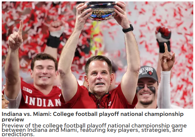 Christopher Hughes+FollowCignetti’s Hoosiers: Big Ten Shockwave!Hoosier Nation, are we witnessing history or what? Curt Cignetti’s secret sauce has Indiana sitting at 15-0 and prepping for a shot at the national title against the Canes. Kirk Herbstreit is floored by how fast Cignetti flipped the script, calling IU “as well-coached as anyone.” The real rivalry? Indiana vs. every doubter who said this turnaround was impossible. Veteran transfers from JMU have been absolute game-changers. Can the Hoosiers finish the sweep? #Sports #Football #Hoosiers00Share