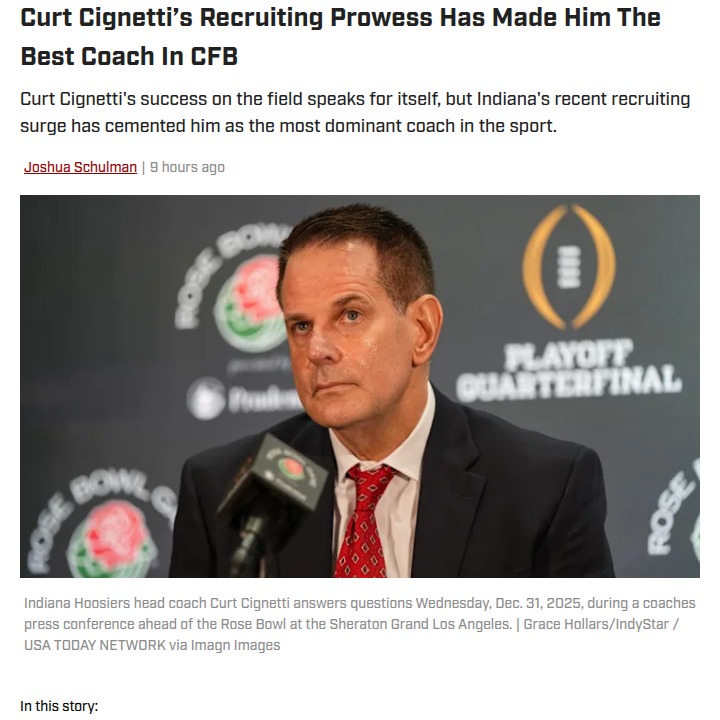 Jeffrey Armstrong+FollowCignetti’s Portal Magic: Hoosiers’ RiseHoosier Nation, are we witnessing the Curt Cignetti era rewrite Indiana football history? After rolling Bama in the Rose Bowl, Cignetti’s not slowing down—he’s crushing the transfer portal, landing stars like Josh Hoover and Nick Marsh. The real rivalry now? Indiana vs. the blue bloods on the recruiting trail. With Cignetti’s multitasking and discipline, the Hoosiers are suddenly a CFP threat. Is this the dawn of a new powerhouse? #Sports #Football #Hoosiers00Share