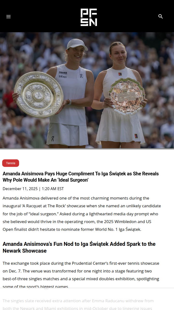 Stephen Wilson+FollowAnisimova’s playful pick for tennis’s ‘ideal surgeon’Amanda Anisimova had everyone smiling at Newark’s first-ever tennis showcase when she named Iga Świątek as her top choice for “ideal surgeon.” Her reason? Świątek’s laser focus and book smarts—qualities that apparently translate from the court to the operating room! The event itself was buzzing, with last-minute lineup changes and big names like Carlos Alcaraz and Jessica Pegula stepping in. Anisimova’s lighthearted moment was a highlight, showing the camaraderie and respect among the game’s elite. What other surprising off-court talents do you think tennis stars might have? #Sports #Tennis #IgaSwiatek00Share