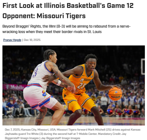 EchoingEagle+FollowIllinois-Missouri rivalry heats up in St. LouisNothing resets the mood like a fierce Illinois-Missouri showdown in St. Louis, especially after the Illini’s gut-wrenching loss to Nebraska. Illinois has dominated this rivalry lately, but Missouri’s high-paced, unpredictable offense—powered by Mark Mitchell—could shake things up. The Tigers are riding a strong start, but their defense has shown cracks, especially inside. For Illinois fans, this game isn’t just about bragging rights; it’s a chance to bounce back and build momentum before Big Ten play ramps up. Who do you think will step up and own the moment this year? #Sports #IllinoisBasketball #Mizzou00Share