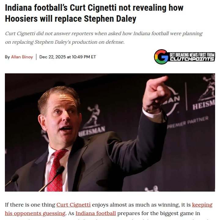 glen25+FollowIndiana’s defense faces big Rose Bowl testLosing Stephen Daley right before the Rose Bowl is a gut punch for Indiana football fans. Daley’s been a rock in the trenches, and now, with Alabama’s explosive offense on deck, everyone’s wondering how Coach Cignetti will adjust. True to form, Cignetti’s keeping his cards close—no hints about the defensive game plan, just a promise that we’ll see it all unfold on game day. It’s a huge moment for the Hoosiers, and the suspense is real. How do you think Indiana should handle Daley’s absence against Bama? #Sports #Football #IndianaFootball00Share