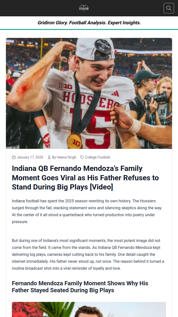 Christopher Hughes+FollowIndiana family’s quiet act steals the showWhile Indiana’s football team made headlines on the field, it was a simple gesture in the stands that truly captured hearts. During the Hoosiers’ playoff run, cameras caught QB Fernando Mendoza’s father staying seated during every big play—not out of nerves, but in solidarity with his wife, Elsa, who uses a wheelchair due to MS. Instead of joining the crowd’s celebrations, he chose to stay by her side, showing that loyalty and love can be the most powerful statement. How do you think moments like this change the way we see sports and family? #Sports #Football #IndianaFootball153Share