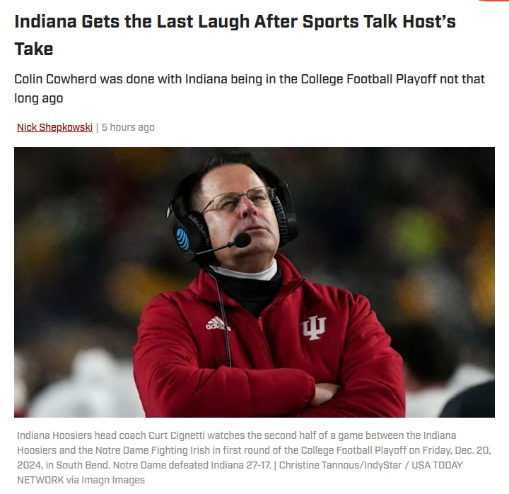 phughes+FollowIndiana football proves the doubters wrongIndiana’s football team just keeps turning heads—especially after sports radio host Colin Cowherd’s infamous take that they didn’t belong in the College Football Playoff. Fast forward, and Indiana not only snagged a rare first-round bye but also won their quarterfinal, something no other team with a bye has managed in two years. Their success isn’t about flashy transfer portal names, but smart recruiting and a coaching staff that knows how to build a real contender. What do you think: Is Indiana here to stay as a college football powerhouse, or is this just a hot streak? #Sports #Football #IndianaFootball00Share